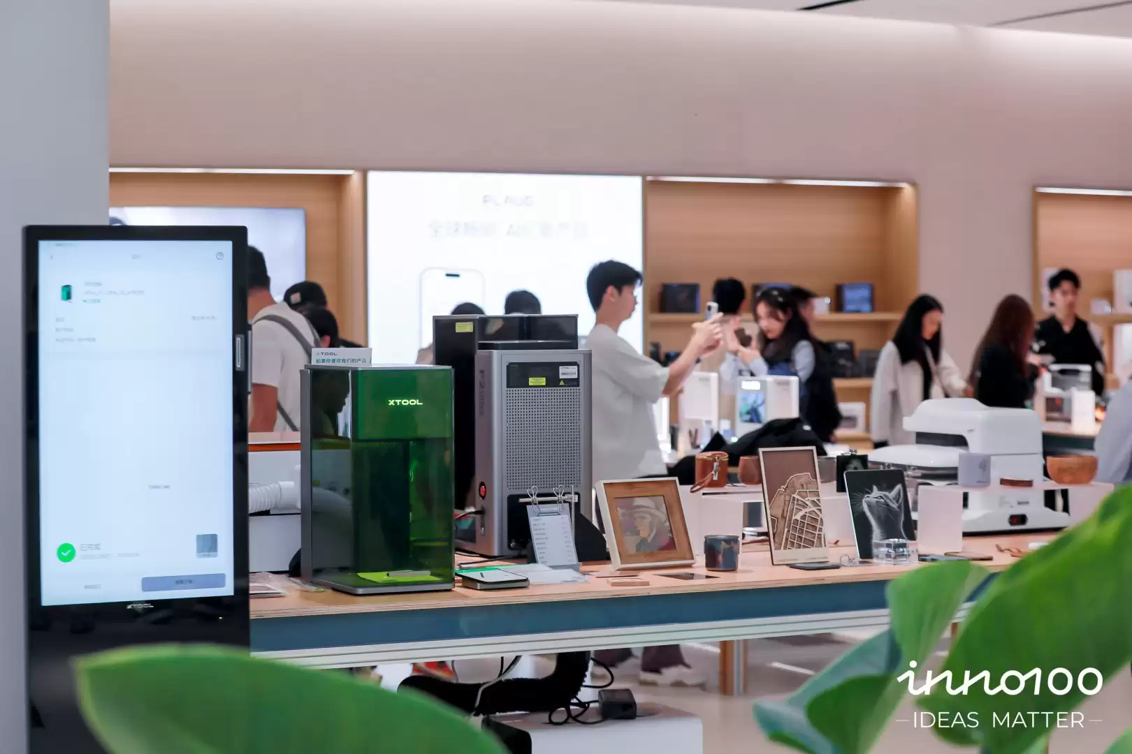 从产品布局来看,INNO100围绕几个核心功能区展开,包含全形态机器人互动区、“万物定制工作站”和“创造力样板间”。目前店内展示的商品均可现场直接购买。