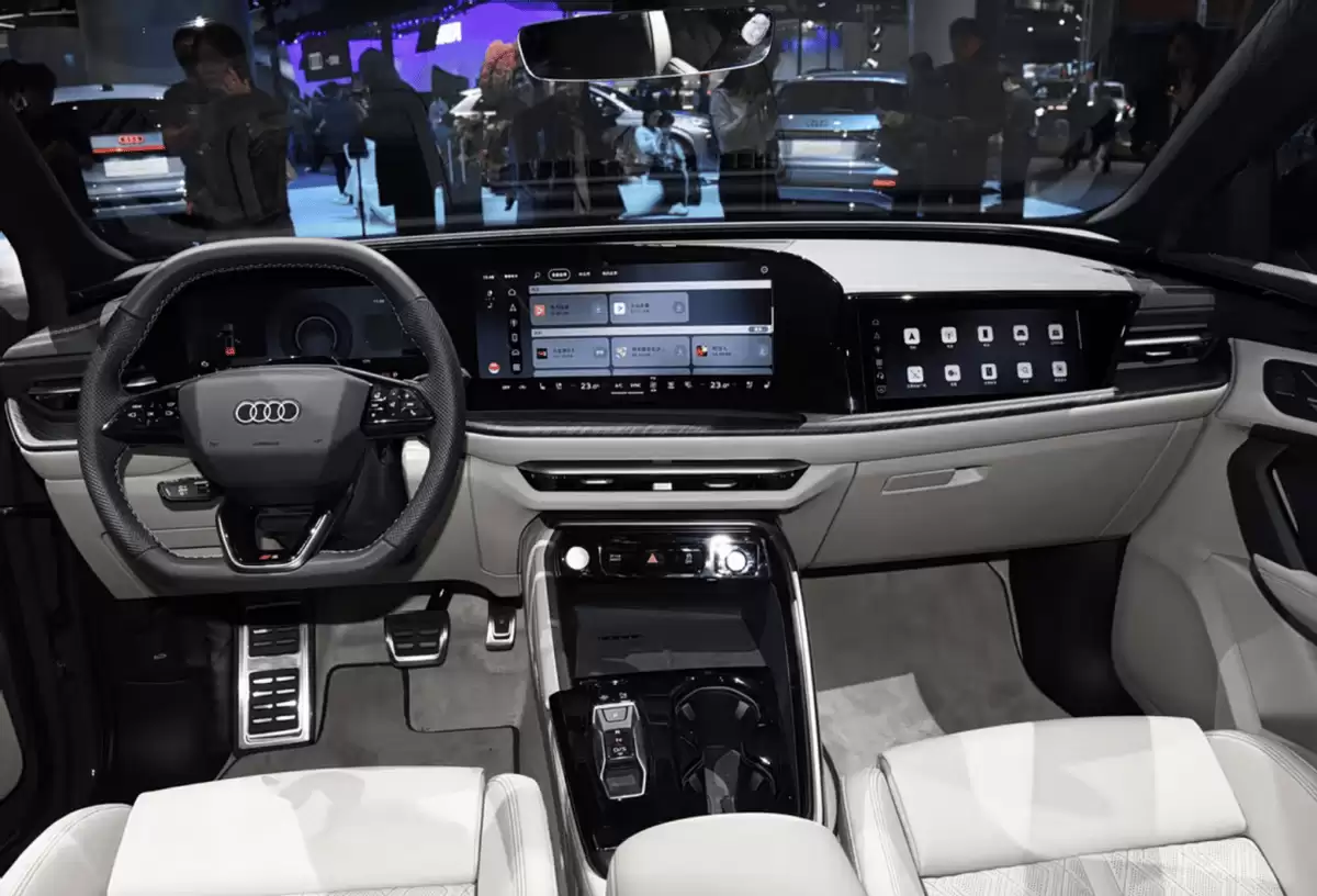 外观方面,新车采用奥迪新一代设计语言,八边形进气格栅与锐利LED灯组构成强烈的视觉冲击,车身线条较现款更为凌厉。虽然整体轮廓仍保留家族化特征,但通过细节优化营造出更强的运动气质。尺寸数据成为另一大亮点——轴距较海外版加长125mm至2945mm,车长增加至4842mm,后排乘坐空间得到显著提升。不过,加长后的车身比例在侧视图中略显厚重,部分观众认为其协调性不及现款车型。