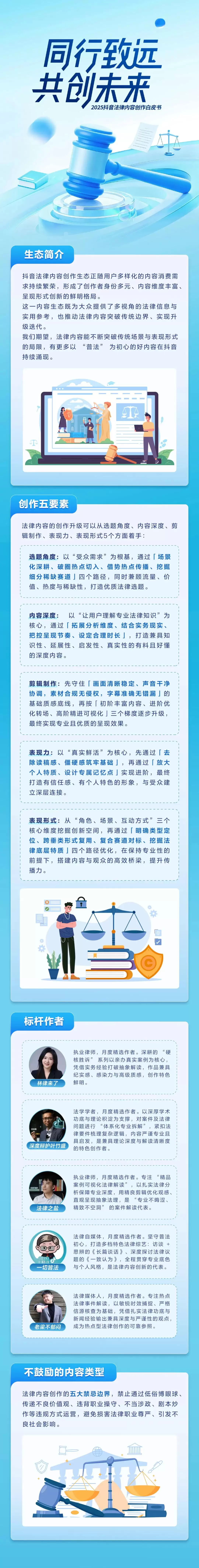 《抖音社区法律行业公约》同时明确,平台严禁传播缺乏合法依据、虚假不实、刻意博眼球的法律内容,以防范法律误导风险,避免用户因错误认知遭受权益损害或承担法律责任。