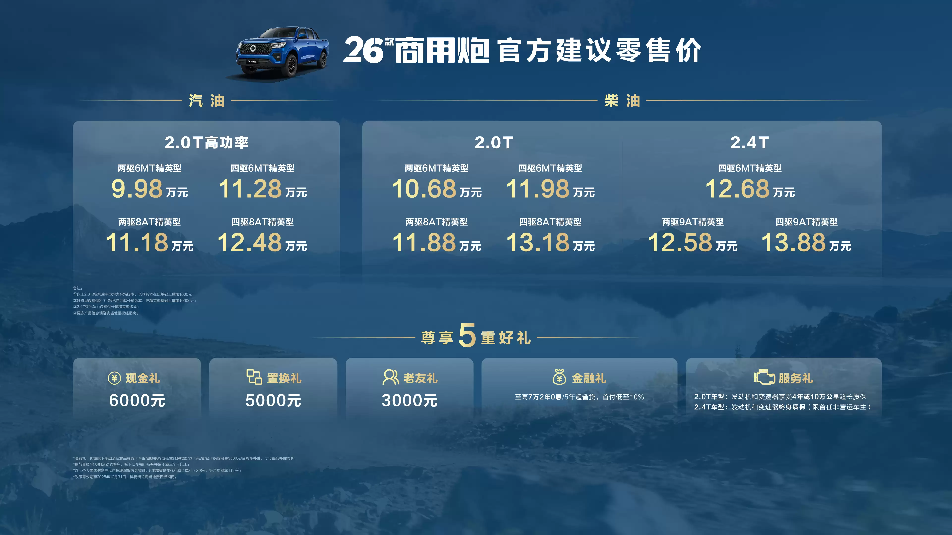 2026款长城炮上市:性能升级9.98万起,配置更丰富