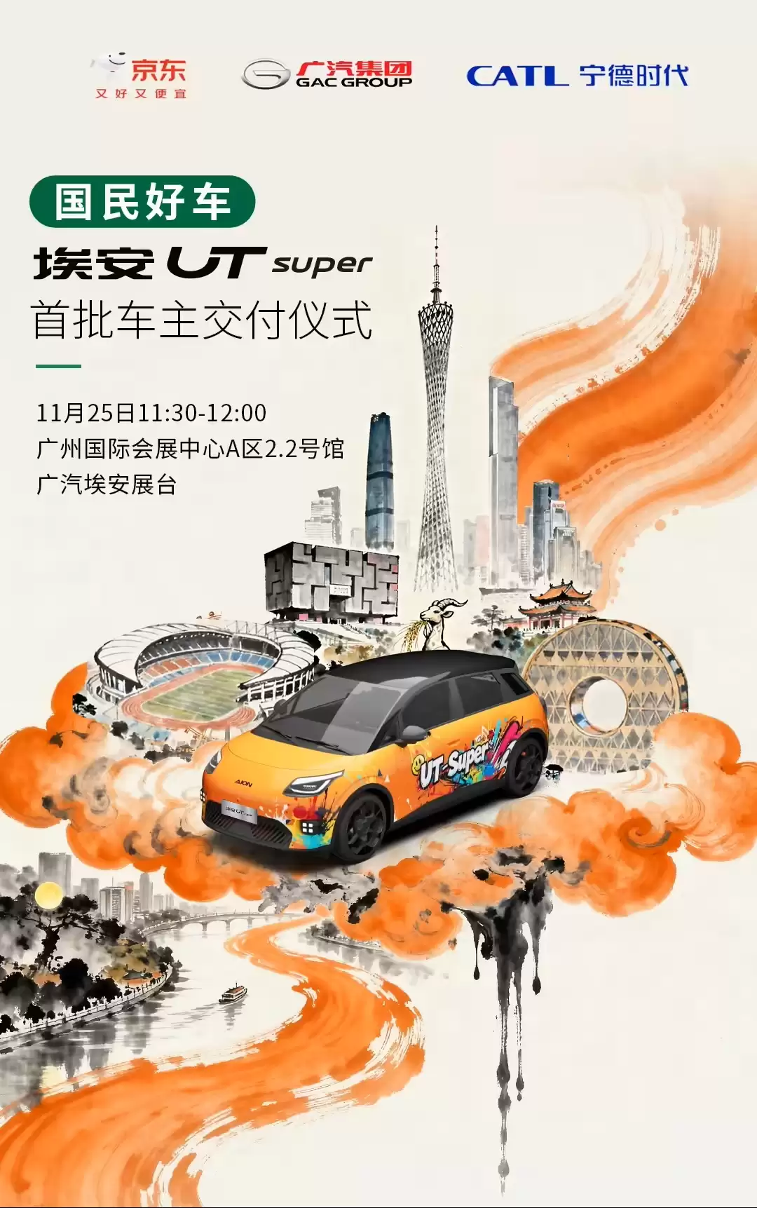 11月25日,广汽埃安通过官方微博宣布,由京东联合宁德时代、广汽集团共同打造的"国民好车"埃安UT Super正式开启全国交付。首批车辆交付仪式在广州车展的广汽埃安展台隆重举行。