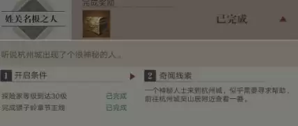 主线结束后,一名神秘人物将出现在杭州城内。你需要找到此人并与之对话,了解其请求后接受协助任务。完成协助后,对方会提供一个具体坐标位置。前往该坐标点进行探索,即可获得第二条重要线索。