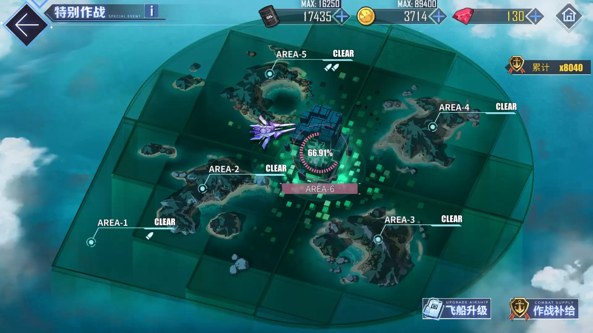 活动关卡总共设有六关,采用了多舰队连续作战与港区共斗的形式。玩家通关后,需要等待全港区的进度达到要求,才能进入下一关继续作战。如果挑战时全港区的挑战进度已满,那么只需通关一次即可继续推进。除了第一关需要组建两支舰队参战外,第二关至第五关都要求三支舰队连续作战,第六关更是需要四支舰队。当然,各位玩家也可以选择只用一支舰队挑战所有关卡,不过这样就无法拿到多舰队的额外奖励了。此外,第六关能够获得的PT奖励最为丰厚,因此建议大家优先刷这一关来积攒PT。