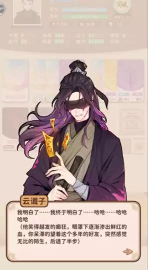 4、入魔的云谪子:第二次相遇时,在云谪子离队前完成两次结交10气运道友任务,同时让三名道友经历死劫成为心魔而入魔,云谪子离队时两杯酒皆不选,云谪子入魔,第三次相遇完成成就。