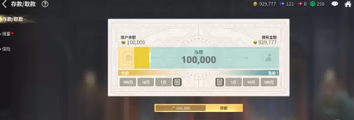 银行系统与达克特管理密不可分,目前系统提供三大核心服务——存款服务、储蓄服务与定额保险服务,接下来就为大家详细解析各项功能。通过存款服务将资金存入银行,不仅能规避航海途中遭遇意外海难时的资产损失,还能获得稳定的利息收益。