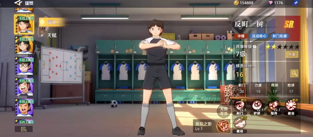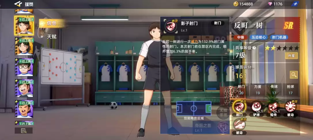 作为SR品质的中锋球员,反町一树在压迫对手核心防线时展现出了出色的战术价值,被广大玩家亲切地称为"射门机器"。这意味着他在进攻端拥有极具威胁的射门技能。从综合评分来看,反町一树获得了161分的高分,这相比普通SR球员120分左右的平均水平有着明显优势。因此在中锋位置上,他确实具备很大的培养潜力。从他的六维数据中可以发现,射门能力达到20分的亮眼数值,这保证了他后期在射门动作运用上的多样性。此外,力量19、传球17和抢球17的均衡得分,都为他执行射门动作提供了坚实的基础保障。