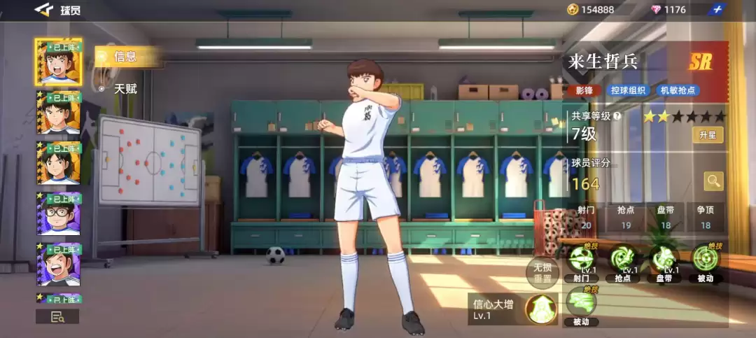 在游戏中,来生哲兵是SR品质角色中定位相当特殊的一位球员,通常被安排在影锋位置上发挥作用。作为控球组织环节中具备相当能力的球员,他在实战中通过各种机敏动作进行抢点同样能取得不错的效果。综合来看,根据来生哲兵的定位,他在各方面属性中主要依赖的是射门20、抢点19、盘带18以及争顶18这几个核心数值。从评分数值来看,他的整体平衡性尚可,球员总评分也有164分。这样的评分不仅说明他是一位拥有自身特点的球员,也意味着他具备不错的潜力空间。不过在整体属性六维图中,我们可以明显发现他的弱点在于抢球,这项数值仅有15分。因此,虽然在抢点时可以利用他的优势,但涉及到直接对抗的拼抢环节,交由其他球员来处理可能会更加合适。
