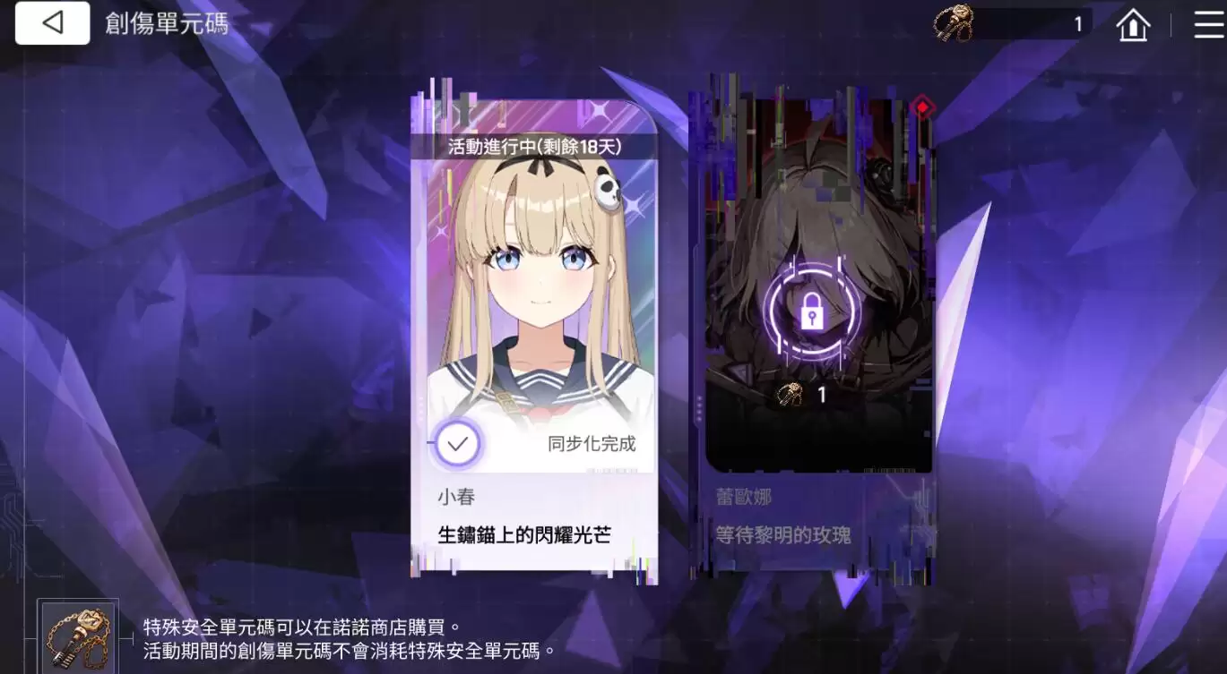 在单元创伤码玩法中还会涉及钥匙系统——如果是UP角色的专属剧情,无需消耗钥匙即可直接解锁;但普通卡池中的剧情则需要先购买钥匙,才能逐步解锁。整个奖励机制其实与剧情设定有着紧密联系:当玩家达成100%剧情完成度时,可获得两次彩抽机会;完成教学关卡则能获得300水晶。