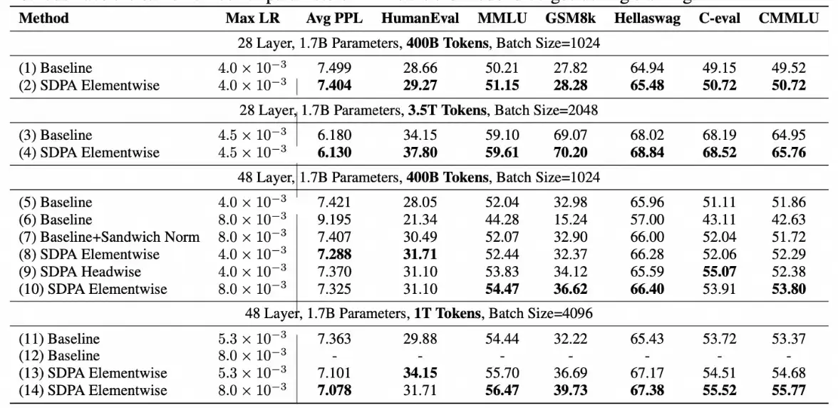 这项突破性研究首次系统揭示了注意力门控机制对大语言模型性能与训练稳定性的影响机制。研究团队通过在1.7B参数稠密模型与15B混合专家模型上进行超过3.5万亿token的大规模训练,并进行了30余组对照实验,不仅验证了门控注意力在提升模型性能方面的显著效果,还成功应用于新一代Qwen3-Next模型,显著提升了模型的推理能力与鲁棒性。