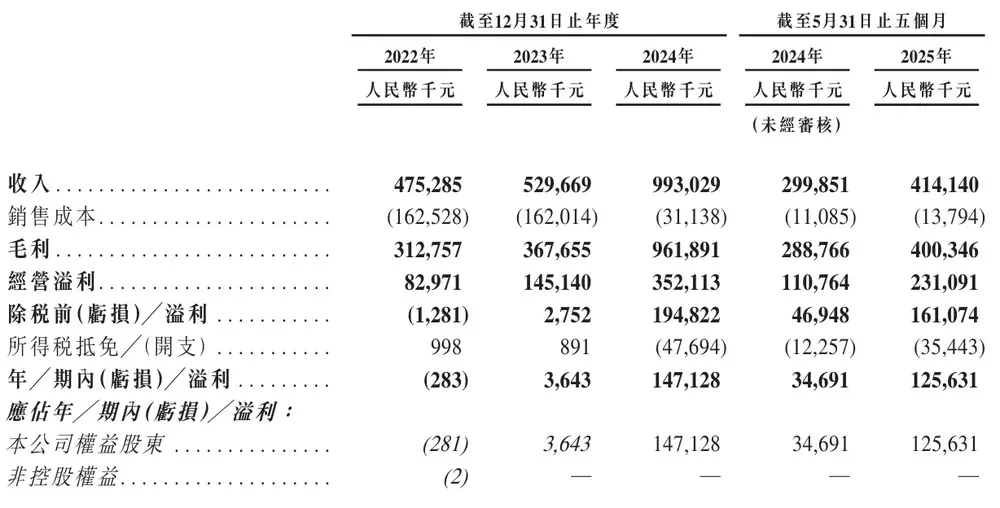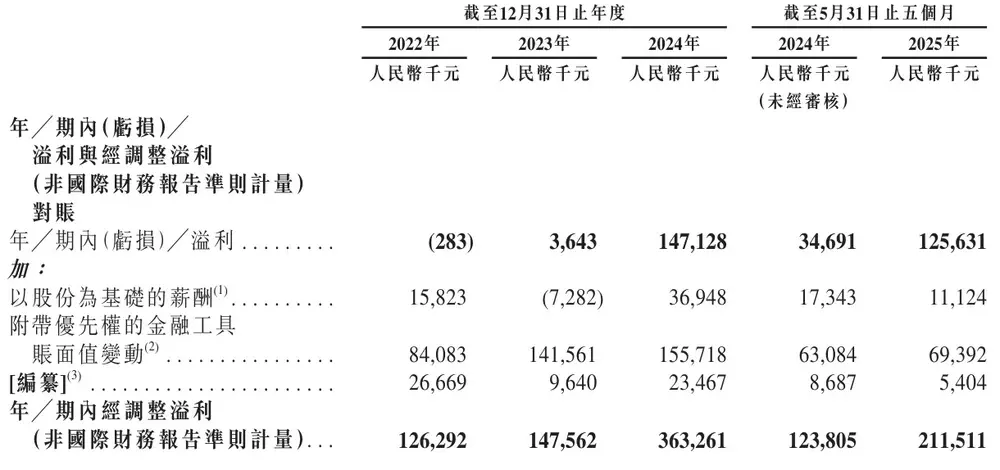 量化派2024年、2024年及2024年经调整净利润分别为1.26亿元、1.48亿元及3.63亿元;2025年前五个月经调整净利润达2.12亿元,较上年同期的1.24亿元保持增长态势。