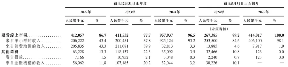 截至2024年12月31日年度及2025年5月31日止五个月,羊小咩贡献的收入分别占量化派总收入的约93.2%及98.1%。在2024年、2024年及2024年12月31日止年度,以及截至2025年5月31日止五个月期间,羊小咩平台交易额中选择分期付款的订单占比分别为66%、26%、85%及79%。