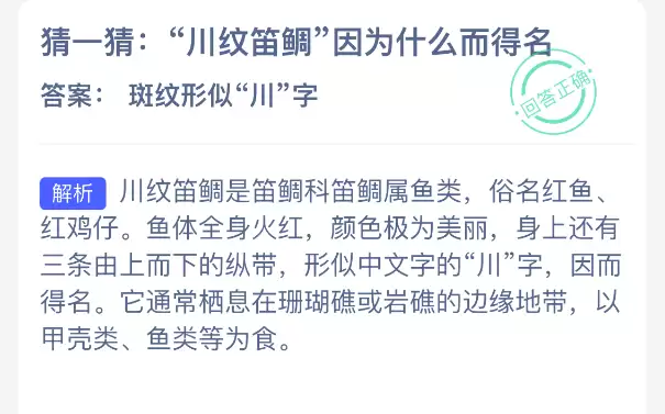 川纹笛鲷得名由来:支付宝神奇海洋2025年11月27日答案解析