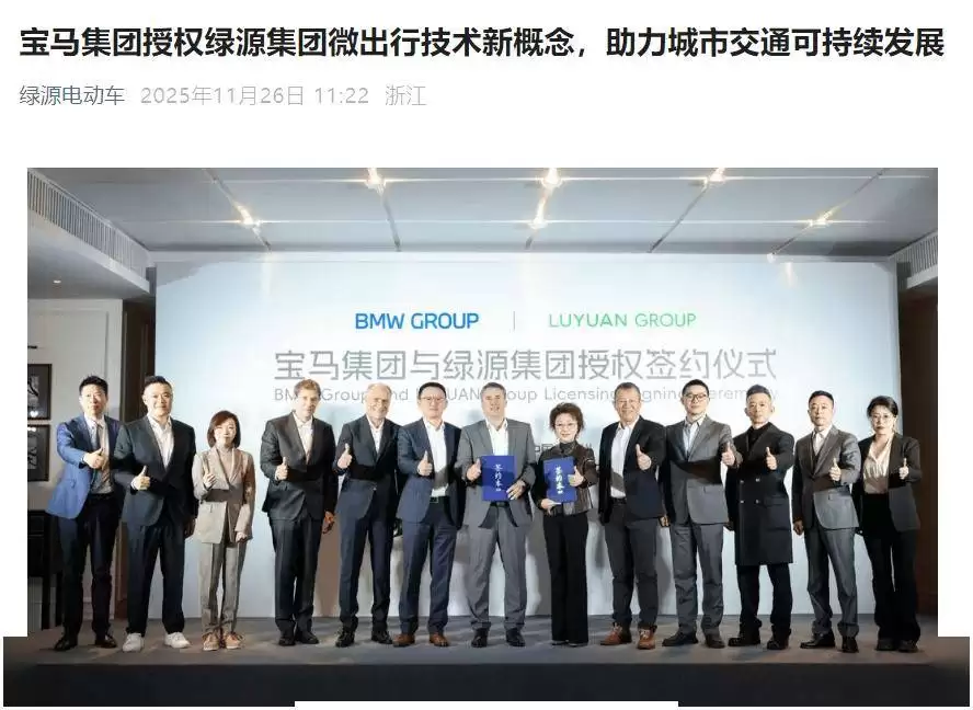 近日,绿源集团与宝马集团在浙江杭州达成技术授权合作协议,由宝马集团将其自主研发的两项创新出行技术——“Dynamic Cargo”(灵动物流三轮车)与“Clever Commute”(智捷通勤滑板车)授予绿源集团使用。这项合作的达成,标志着双方在智慧出行领域的技术整合迈出了关键一步。