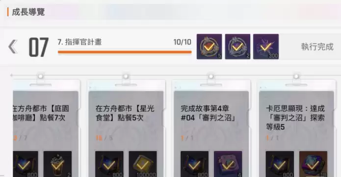 在第七阶段的交易计划中,玩家可以规划长期资源分配方案。这个阶段的任务要求将角色提升至50级,信赖度达到10级。通过满足这些要求可以持续积累更多资源。需要注意的是,这个阶段不必急着完成任务,因为很多日常活动需要数天才能完成。任务系统涵盖了角色训练、典藏互动和模拟演练等多个维度,推进任务进度可能需要更多时间统筹安排。