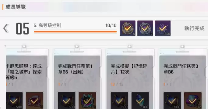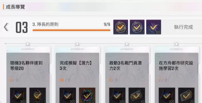来到第三阶段,玩家可以参与延续培养任务。不论是队长原则还是新时代摘要类任务效果,实际上都采用双路线共同完成的设定。建议角色等级达到30级左右再来完成这些任务,因为随着挑战难度提升,操作模式通常会采用数量叠加机制。这个阶段最重要的是解锁潜力系统,启动角色潜力后,任务会对完成次数有特定要求。此外在模拟挑战任务中,大家积累的次数会直接体现在任务进度上,建议根据任务要求合理分配体力——此时各种任务对完成次数的要求较多,体力分配需要更加精细。