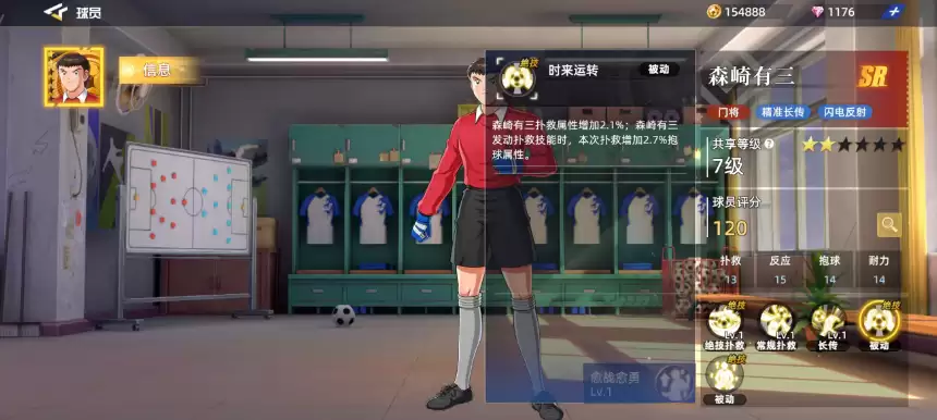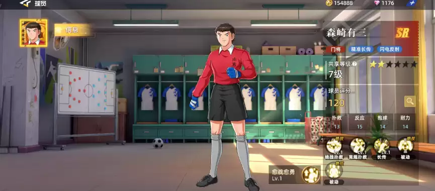 作为专职守门员定位的角色,森崎有三的所有能力都围绕防守展开。他的总评分为120,在SR级别中算不上耀眼,但由于高阶门将获取难度较大,因此他在前期比赛中反而拥有较高的出场率,是许多玩家组建初始阵容时的可靠选择。