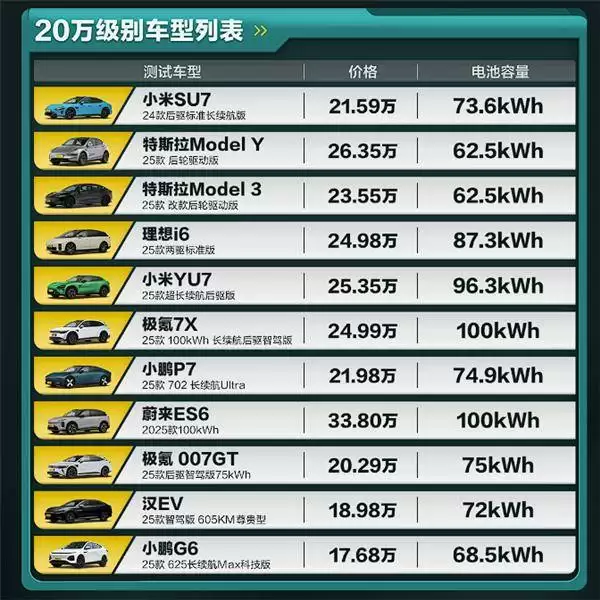 小米SU7续航实测夺冠:懂车帝测试揭晓,领先20万组别车型