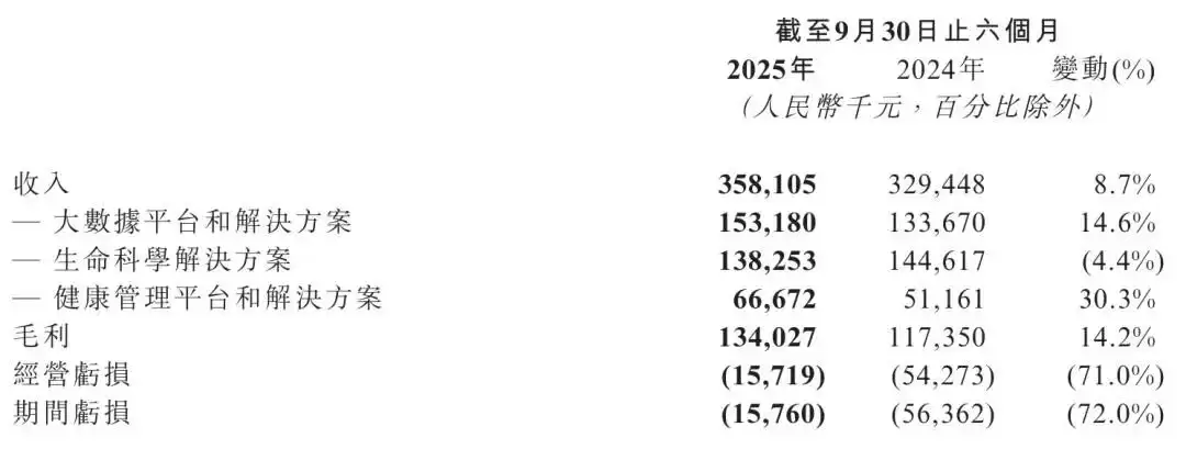 从业务板块来看,医渡科技的大数据平台及解决方案业务表现突出,收入攀升至1.53亿元,较去年同期的1.34亿元增长14.6%。健康管理平台及解决方案同样增势强劲,实现收入6667万元,比去年同期的5116万元大幅提升30.3%。不过,生命科学解决方案业务略有下滑,收入为1.38亿元,较去年同期的1.45亿元下降4.4%。