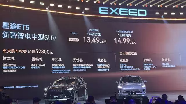 星途品牌近日正式推出全新车型ET5,并已全面启动市场销售。此次共发布两款不同配置版本,官方指导价为14.49万元至15.99万元。新车搭载1.5T增程式混合动力系统,在极限工况下续航里程可突破2000公里,为消费者提供了长途出行的全新解决方案。