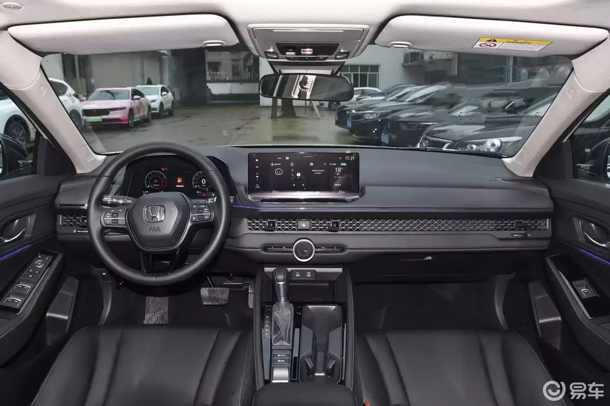 雅阁的内饰则相对传统一些。多功能方向盘的握感区域采用真皮材质,手感舒适,不过换挡方式为传统的机械挡把。10.2英寸彩色全液晶仪表盘和12.3英寸中控屏分别布置在中控台的左前方和中间位置。中控屏搭载Honda CONNECT 4.0车机系统,支持面部识别、主驾语音识别、语音免唤醒等功能,还可以在应用商店下载应用,搭配8个扬声器,甚至可以实现K歌娱乐。车内还配备了前排多层隔音玻璃、多色氛围灯、11.5英寸HUD抬头显示系统、主动降噪系统等配置,极大地丰富了车辆的实用性,提升了车内的整体驾乘质感。