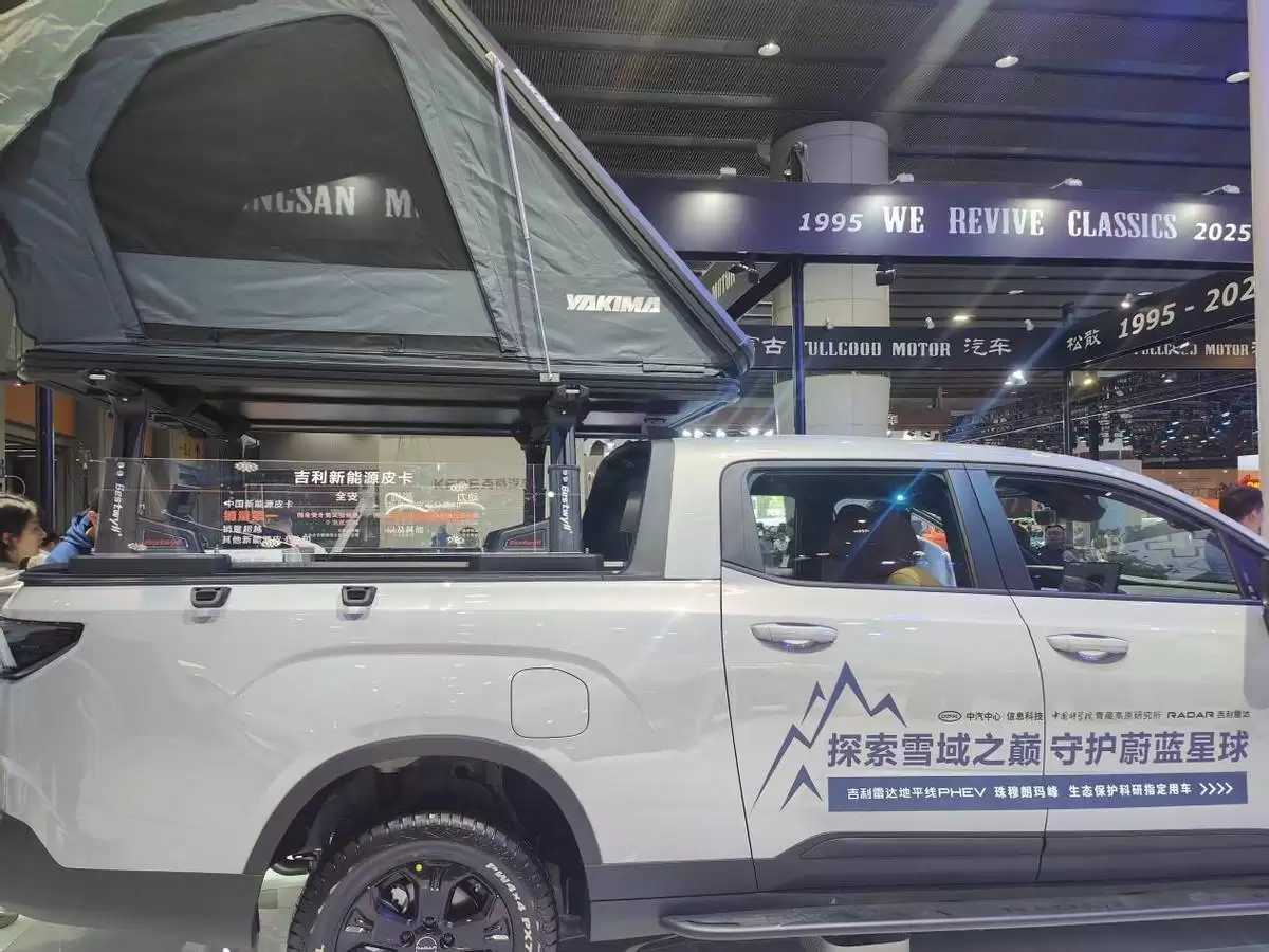 在广州车展现场,吉利新能源皮卡以创新的姿态成为全场瞩目的焦点。其核心展品吉利雷达地平线PHEV车型,凭借搭载的雷神EM-P超级电混系统,在性能参数上实现了突破性进展——综合续航里程超过1000公里,峰值扭矩接近1000牛·米,耐久承载能力超过1吨。这些硬核数据使其成为跨城物流、高原作业、极寒地区运输等场景的理想选择。此前在海拔4000米以上地区进行的实测中,该车型以1017.8公里的续航表现,验证了新能源技术在复杂环境下的可靠性。