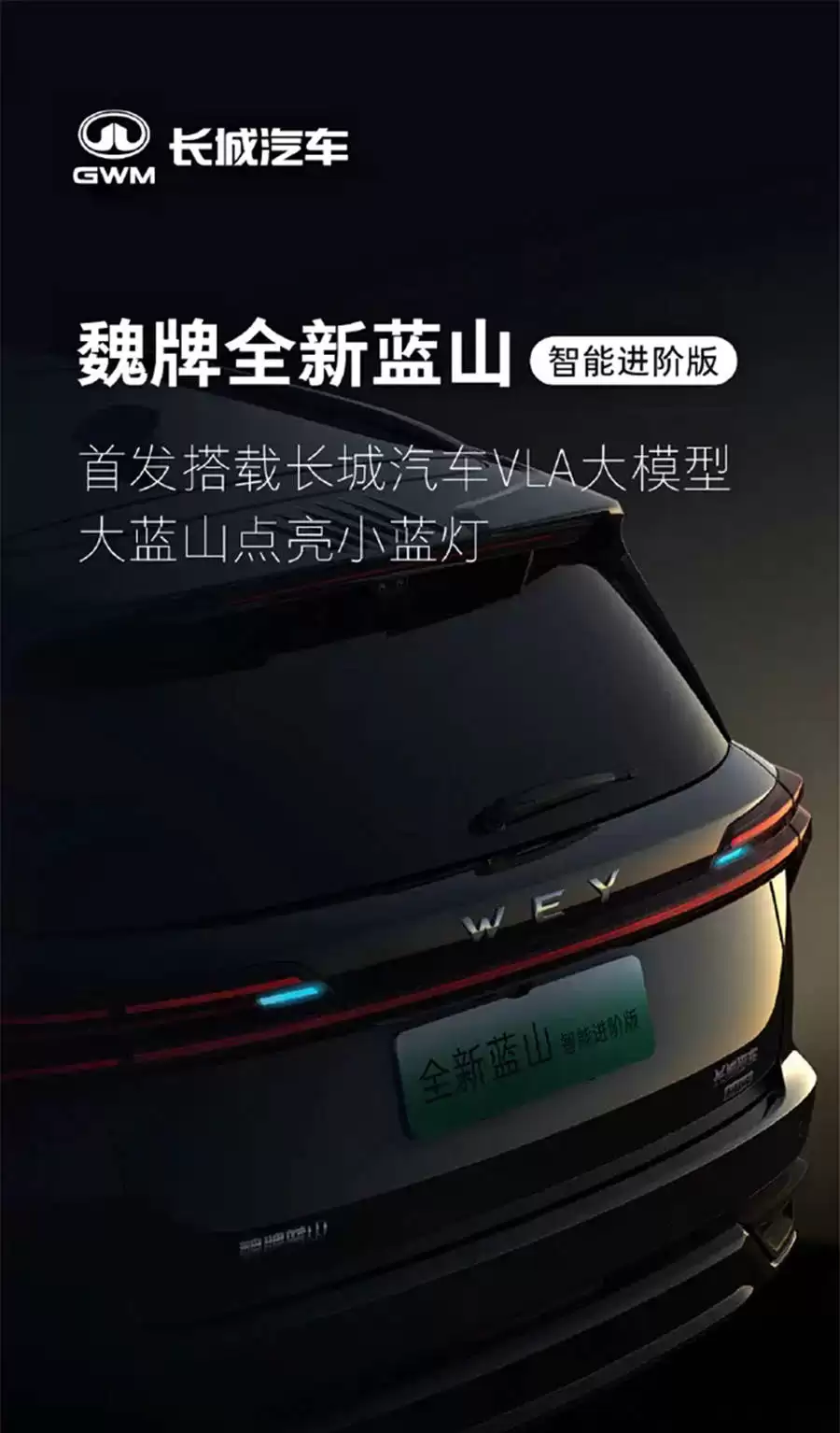 魏牌蓝山进阶版将上市:首发VLA大模型+小蓝灯动力续航亮眼