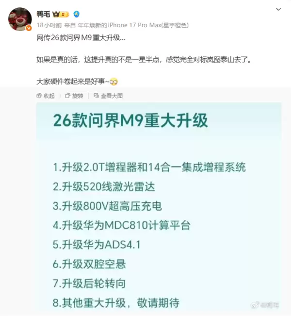 2026款问界M9升级解析:520线激光雷达与黑科技亮点前瞻