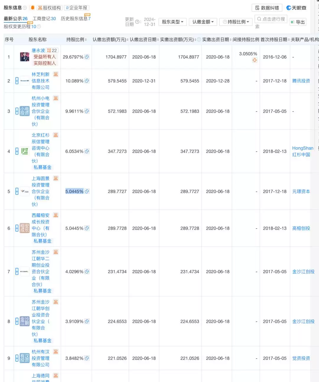 自成立以来,小电科技持续吸引腾讯、红杉、金沙江创投等机构投资。天眼查App信息显示,小电科技创始人唐永波持股29.6797%;腾讯投资持股10.0890%,为最大外部股东;金沙江创投合计持股7.9405%;红杉中国持股6.0534%;元璟资本合计持股6.2979%;高榕创投持股5.0445%。