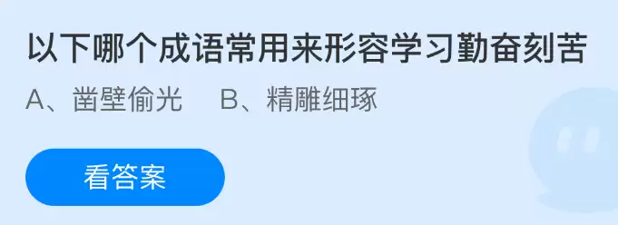 哪些成语是用来形容勤奋刻苦学习的呢?支付宝小鸡课堂开课啦!每天花一分钟参与答题就能赚取饲料,喂养小鸡还能奉献爱心,既轻松又有意义!2025年12月2日蚂蚁庄园的今日题目正确答案是【凿壁偷光】。这个成语出自西汉匡衡凿穿墙壁、借用邻家烛光读书的故事,后来常被用来形容家境贫寒却依然刻苦读书的精神。