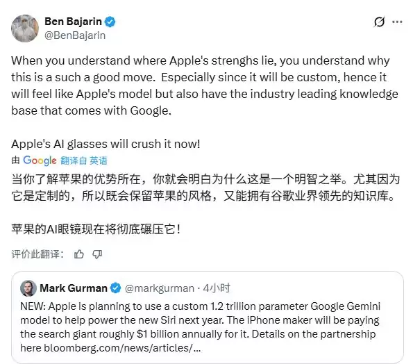 与苹果在Safari浏览器中将谷歌设为默认搜索的公开合作不同,这次AI合作显得格外低调。