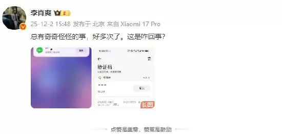 紧接着,小米汽车副总裁李肖爽也通过微博分享截图,表示自己同样遭遇短信轰炸:"总有些奇奇怪怪的事,已经好几次了。这到底是怎么回事?"