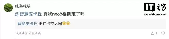 消息曝光后,有网友在评论区留言问道:“皮皮,我看好超大电池”,博主回复称:“10K(指10000mAh级别)在路上”;另一名用户则询问:“真我neo8档期定了吗”,博主回复:“正在提交入网”;还有用户表示:“皮皮,屏下前摄,明年见到嘛(除了中兴)”,博主回复道:“上半年没有”。