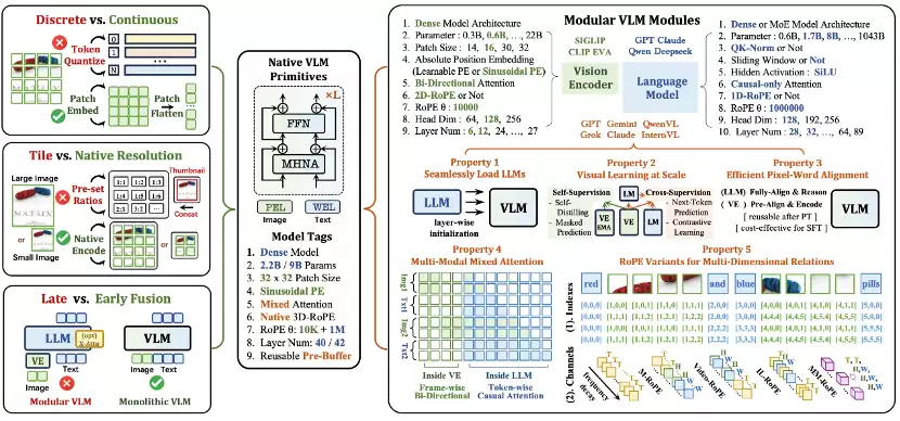 此次,商汤彻底摒弃了传统的模块化结构,从底层原理出发,推出了从零设计的NEO原生架构。NEO架构通过在注意力机制、位置编码和语义映射三个关键维度的底层创新,让模型具备了统一处理视觉与语言的能力。