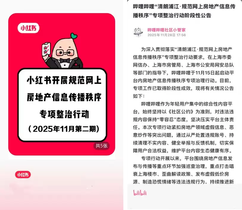上海网信办指导小红书、B站自查清理涉唱衰楼市信息4万余条