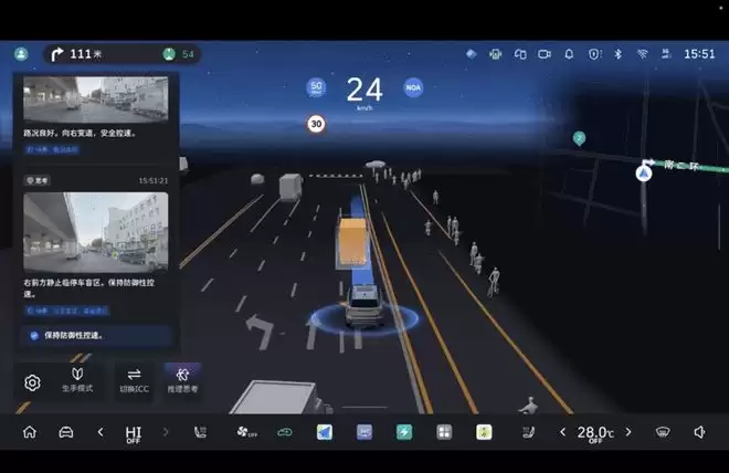 通过VLA大模型对指令的执行过程,可以看出系统不再是对单一信号作出反应的机械装置,而是能够“独立思考”的智能体。它能全面感知环境、理解场景,并以更接近人类的思维逻辑,联想可能出现的状况并作出合适决策。同时,中控屏实时刷新的可视化CoT(思维链)卡片,清晰呈现每一次加速、减速或转向背后的感知、推理、决策与执行全流程,彻底打破辅助驾驶的“黑盒”状态,将系统逻辑透明地呈现给用户,建立起更值得信赖的人车关系。