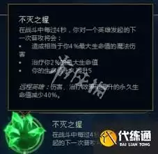 1. 不灭之握:这是波比非常实用的基石符文。在与敌人换血或对拼时,不灭之握能提供额外的伤害和回血效果。每次普攻或技能命中敌方英雄,都会叠层,满层后造成额外伤害并恢复生命值,大大增强了波比的对线续航能力。