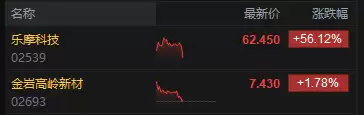 今日两只新股挂牌上市,乐摩科技大涨56%,金岩高岭新材料涨幅超过1%。乐摩科技在公开发售阶段获得7324.29倍认购,最终发售股份数目为55.56万股,约占发售股份总数的10%。