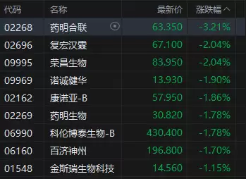 生物医药板块普遍回调,药明合联跌幅超过3%。浦银国际研报指出,展望2026年,对医药板块整体持乐观态度。就子行业而言,考虑到中国创新药企的研发能力与效率已跻身世界一流,并成为全球BD交易的重要贡献者,且BD交易对中美地缘政治摩擦基本免疫;国内创新药销售有望受益于创新药支持政策的持续落地(包括医保谈判对创新药的支持、商业保险的快速发展等);越来越多的生物科技企业将进入盈利期等因素,该机构重申对创新药板块长期的看好观点。