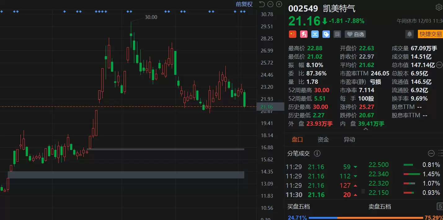 A股凯美特气大跌近8%,股东减持引发市场异动