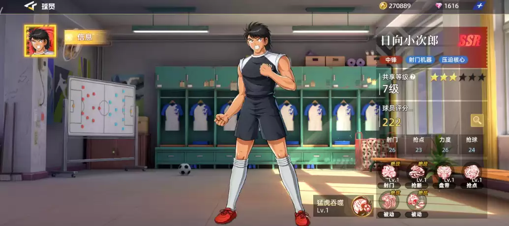 最后再推荐一位前锋球员——新田瞬。作为红卡球员,他除了可以被放置在前锋位置使用外,也可以作为影锋角色使用。在这类品质的球员中,他六维图中比较突出的是抢球能力。后期他还具备此类技能以进一步增强实力。如果在使用中再次发动威力达到115%左右的射门,所带来的时机效果可以根据其招式进行百分比加成。凭借百分比带来的射门动作,还能配合后期的短传进行各种连招动作的使用。