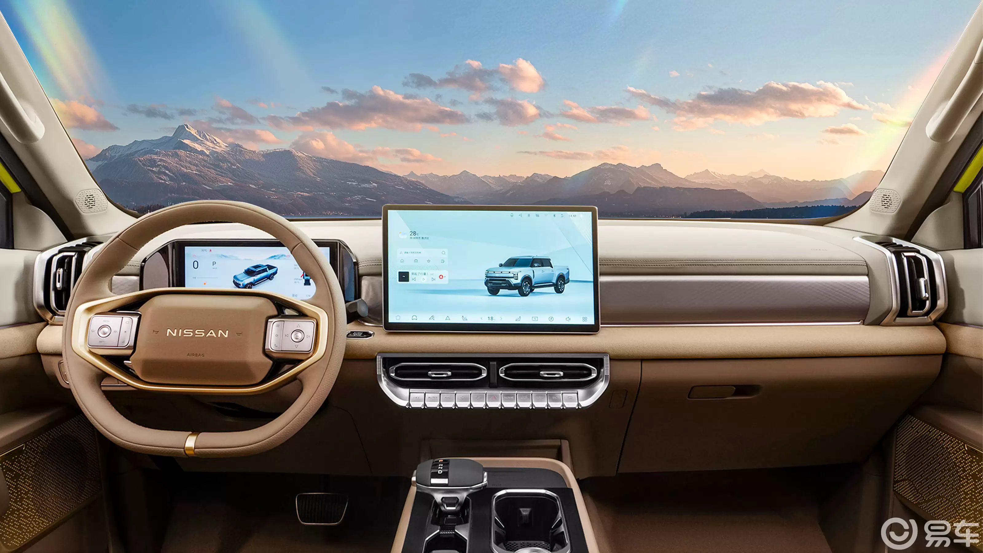 设计方面,锋坦Frontier Pro以“潮玩由NI”为核心理念,将硬派越野风格与未来美学深度结合。家族式的V-Motion前脸搭配悬浮激光镶嵌LOGO,车身采用2K高色域防护装甲工艺,融合豪华品牌同源工艺;赛博朋克风格的贯穿式尾灯进一步强化了整车的科技张力。内饰空间则颠覆了传统皮卡的印象:前排“日产大沙发”式真皮座椅选用6层复合材质,兼顾支撑性与透气性;后排支持7种组合模式,最大可拓展出970升纯平载物空间,配合全景天窗与顶级音响系统,营造出媲美高端乘用车的驾乘体验。