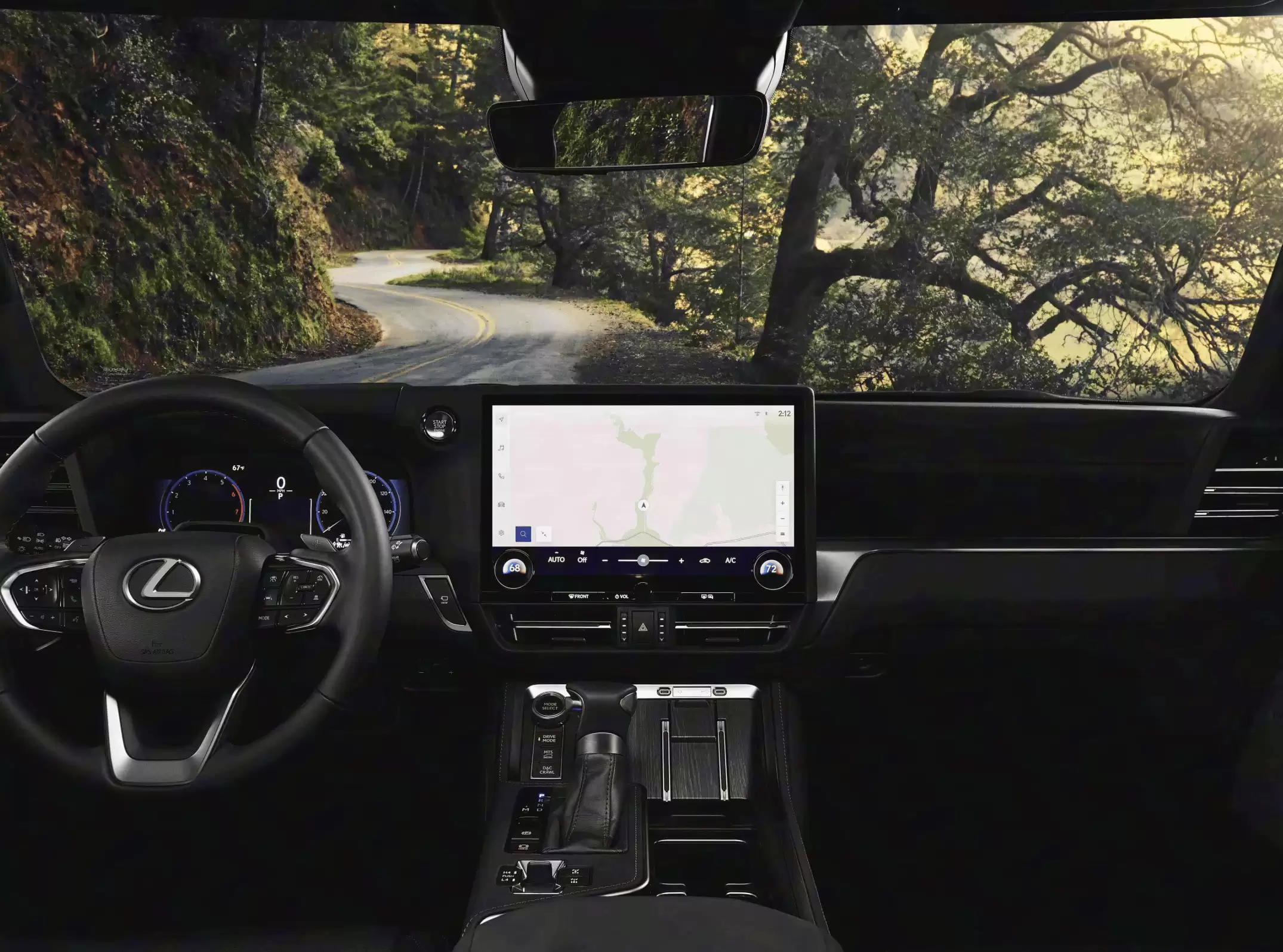 全新雷克萨斯GX以硬朗的设计语言重塑经典,并提供八种外观配色方案。车身采用标志性的方正造型,黑色全尺寸行李架与隐私玻璃形成了视觉延伸,19英寸熏黑轮毂搭配全地形越野轮胎,强化了力量感。尺寸方面,新车长宽高分别为4960-4970/1980-2000/1925-1935毫米,轴距达到2850毫米,提供5座及6座两种布局。其通过性参数显著提升:接近角26°、纵向通过角24°、离去角22°,最小离地间隙增加至260毫米。车内配备真皮拼接座椅与21扬声器Mark Levinson音响系统,营造出兼具豪华感与实用性的驾乘空间。