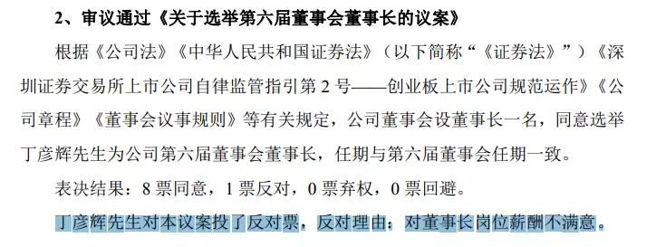 丁彦辉反对自己连任董事长一事,迅速成为热议话题。据上海证券报报道,丁彦辉在回应投反对票时解释称,“这其实是董事会的笔误”,自己实际上是对公司的激励机制存在异议。
