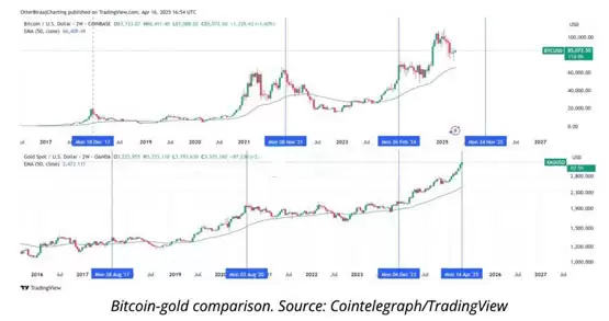 黄金暴涨预示牛市?比特币或150天内跟涨