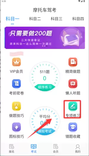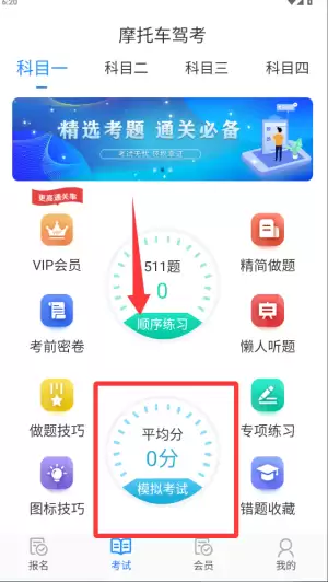 想知道摩托车驾考app如何进行模拟考试吗?其实操作起来非常简便。打开应用后,首先要选择考试类型,比如科目一或科目四,之后就能进入题库开始练习。你可以按照顺序逐题练习,或者选择随机抽取题目,根据个人喜好灵活安排学习节奏。