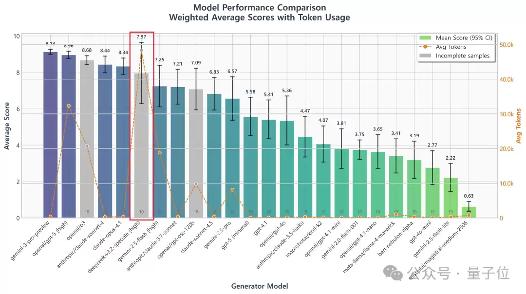 举例来说,在解决同一个问题时,Gemini仅需2万个token,而Speciale却要花费7.7万个。