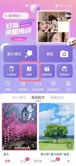 在美图秀秀首页底部的功能菜单中,点击“拼图”按钮,即可跳转至拼图编辑页面。
