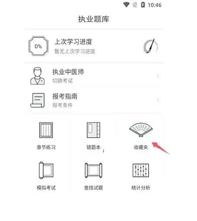 想要在中医通app中找到收藏夹,首先需要打开中医通APP,在首页界面中定位并点击【执业题库】图标,即可进入题库功能页面。在这个页面里,找到【收藏夹】选项,点击进入后就能看到您保存的所有题目和学习内容。