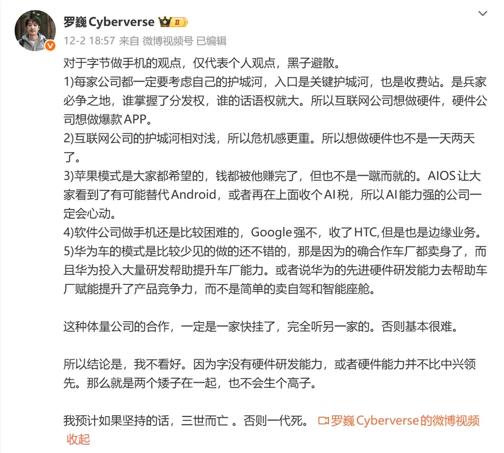 需要说明的是,关于字节做手机的观点仅代表个人看法,欢迎大家理性讨论。