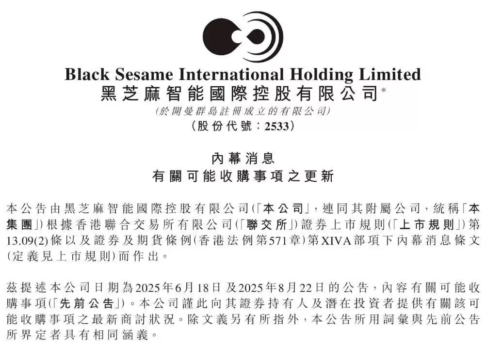 黑芝麻智能表示,若收购顺利完成,公司将取得亿智电子的控股权,使其成为集团的非全资附属公司,其财务表现将纳入上市公司合并报表。该交易预计将于2026年第一季度正式完成。